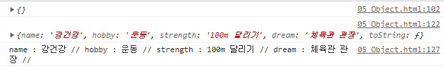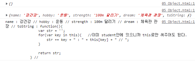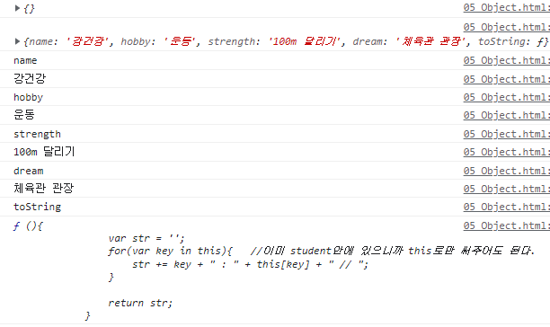 코드 내용이 궁금한 것은 아니므로 키값이 toString이 아닐때만 출력하게끔 조건을 걸어준다.