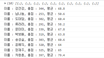 } //key가 name, getSum, getAvg가 아닌 i번째 객체의 안에 있는 속성값들을 다 더하겠다.
